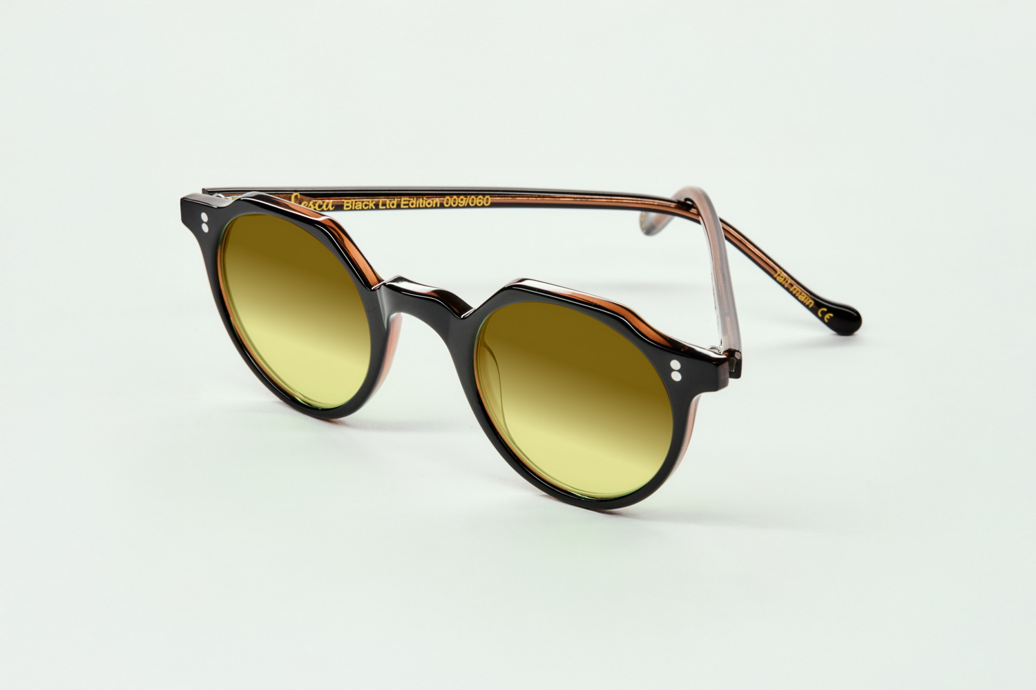 Le modèle iconique HERI est de retour en série limitée : une double plaque noire intense en façade, révélant subtilement une couleur vibrante et cachée à l’intérieur.Description . . .1. Personnalisez vos verres :